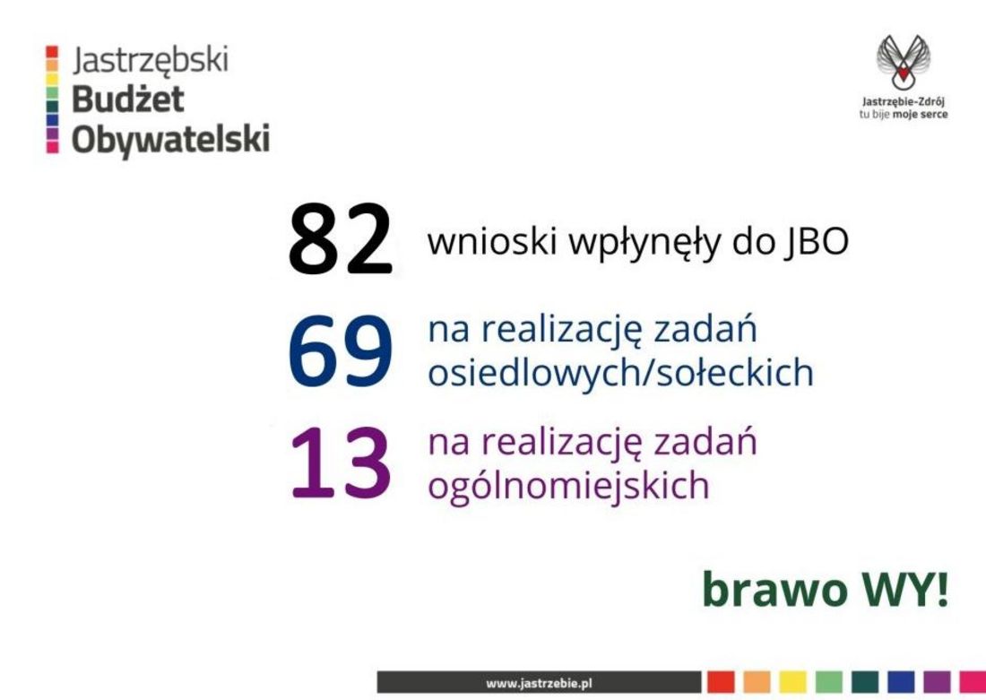 W tym roku jastrzębianie zgłosili w sumie 82 pomysły. Z czego 69, to zadania osiedlowe/sołeckie, a 13 ogólnomiejskie. Większość została zgłoszona w sposób tradycyjny-papierowy.