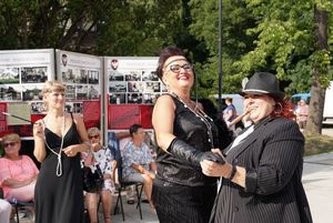 Prezydent Anna Hetman z kobietami przebranymi w stroje z dwudziestolecia międzywojennego