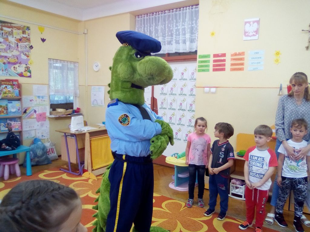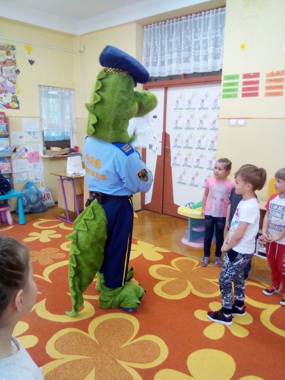 W minioną środę, tuż po śniadaniu, wychowanków przedszkola przy ul. Opolskiej odwiedził nietypowy gość - SMokuś. Po krótkim zapoznaniu się, najbardziej lubiany wśród najmłodszych mieszkańców miasta strażnik, przedstawił dzieciom najważniejsze zasady dotyczące bezpiecznej zabawy, uczestnictwa w ruchu drogowym czy wzywania pomocy za pośrednictwem numerów alarmowych. Przedszkolaki odwdzięczyły się mu wspólną zabawą i wesołymi piosenkami. SMokuś wręczył też wszystkim obecnym gadżety odblaskowe, z których dzieci obiecały zawsze korzystać.