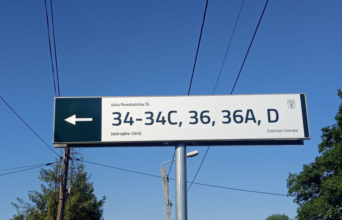 Nowe tablice informacyjne zostały zainstalowane przy ul. Powstańców Śl. oraz ul. Gagarina, obejmując numery domów od 34 do 36C oraz od 134A do 136.