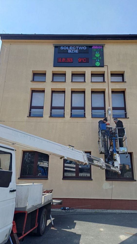 Przy budynku OSP w Bziu zamontowano nowoczesny zegar LED wyposażony w czujnik jakości powietrza oraz wyświetlacz temperatury. Inwestycja została zrealizowana ze środków Funduszu Sołeckiego, a jej wartość wyniosła 30 tys. zł.