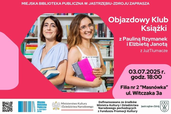 3 lipca o godz. 18:00 w Filii Biblioteki Miejskiej nr 2 Masówka w Parku Zdrojowym odbędzie się spotkanie z autorkami podcastu „Już tłumaczę”. Paulina Rzymanek i Elżbieta Janota, tłumaczki i znawczynie literatury od kilku lat prowadzą podkast o książkach, w którym można m.in. odkryć nowości, jak i starsze tytuły, posłuchać o warsztacie literackim oraz o tym, co książki mówią o świecie wokół nas.