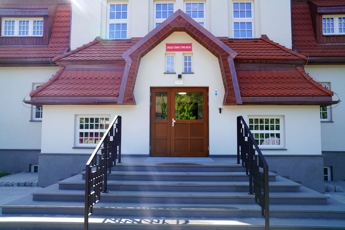 Historyczny budynek oraz lokalizacja wymagały koordynowania działań z konserwatorem zabytków. Efekt końcowy rekompensuje czas – inwestycję rozpoczęto w drugiej połowie 2023 roku – który był potrzebny na wykonanie wszystkich niezbędnych prac. W pierwszej kolejności konieczne było wzmocnienie fundamentów. Następnie wzmocniono dach wraz z częściową wymianą konstrukcji i pokrycia z blachy na dachówkę ceramiczną oraz wykonano termomodernizację budynku. Na szczególną uwagę zasługują wnętrza nowej siedziby Urzędu Stanu Cywilnego. W holu głównym zachowano oryginalne płytki ścienne wraz z poidłami, pozostawiono również oryginalną więźbę dachową. Elegancji miejscu dodają stylizowane meble, obróbki oraz lustra. Budynek wyposażony w windę i pochylnię jest dostosowany dla osób z niepełnosprawnościami.