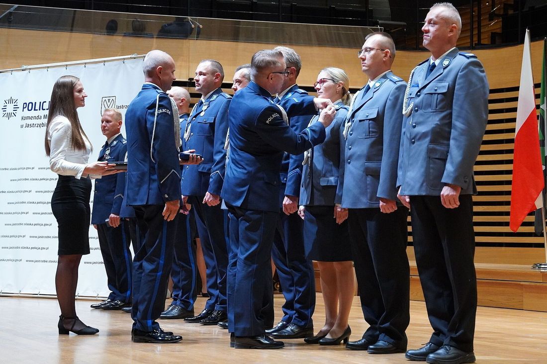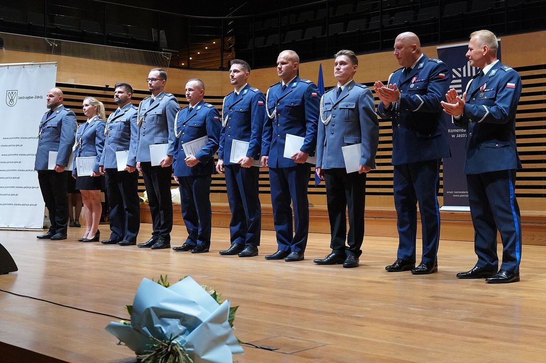 Na szczególne uznanie zasłużyli wyróżniający się funkcjonariusze oraz pracownicy cywilni jastrzębskiej Komendy Policji. W sumie kilkudziesięciu policjantów odebrało awanse i odznaczenia. Wyróżnione osoby podczas uroczystości to najlepsi funkcjonariusze wytypowani z każdego wydziału – osoby, które każdego dnia z oddaniem wykonują swoje obowiązki, nierzadko z narażeniem zdrowia i życia.