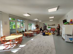 Sale, w których przebywać będą podopieczni przedszkola, zostały gruntownie odnowione: przed malowaniem ścian i sufitów położono na nich nowe tynki. Pojawiły się również posadzki z wykładzinami z tworzyw sztucznych. Przebudowano sanitariaty. Do wszystkich pomieszczeń prowadzą nowe drzwi, a klatkę schodową zabezpieczają specjalne balustrady. Wykonano również termomodernizację i odwodnienie całego budynku.