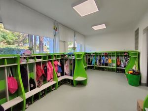 Na nowo postawiono ściany wewnętrzne, wydzielające poszczególne sale lekcyjne, pomieszczenia gospodarcze i szatnię. W budynku wymieniono instalację elektryczną wraz z oświetleniem, a także instalacje doprowadzające zimną i ciepłą wodę oraz system ogrzewania centralnego. Wykonano nową instalację teleinformatyczną, wraz z kamerami wizyjnymi i domofonem. O bezpieczeństwo przedszkola zadbają też nowoczesne urządzenia alarmowe oraz zabezpieczenia przeciwpożarowe.