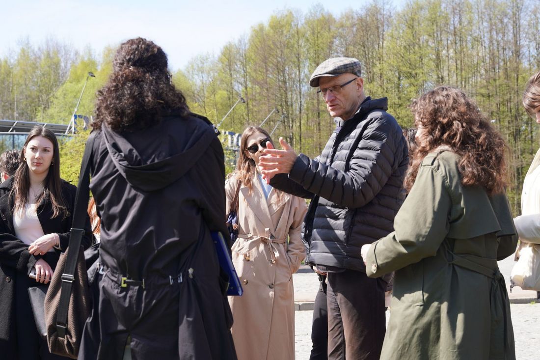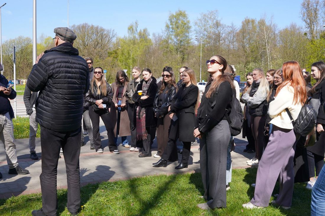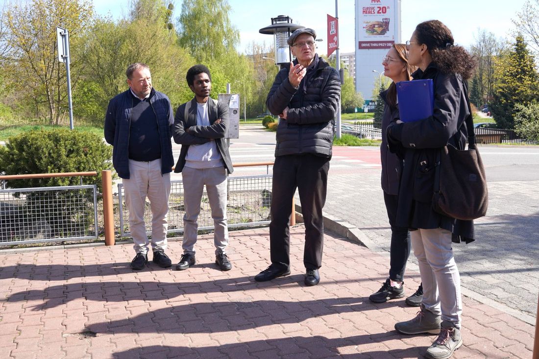 Podczas wizji lokalnej studenci zadawali pytania dotyczące historii miasta, obecnego zagospodarowania terenu oraz potrzeb mieszkańców. Interesowało ich zarówno to, co już funkcjonuje w okolicy, jak i czego brakuje w przestrzeni miejskiej.