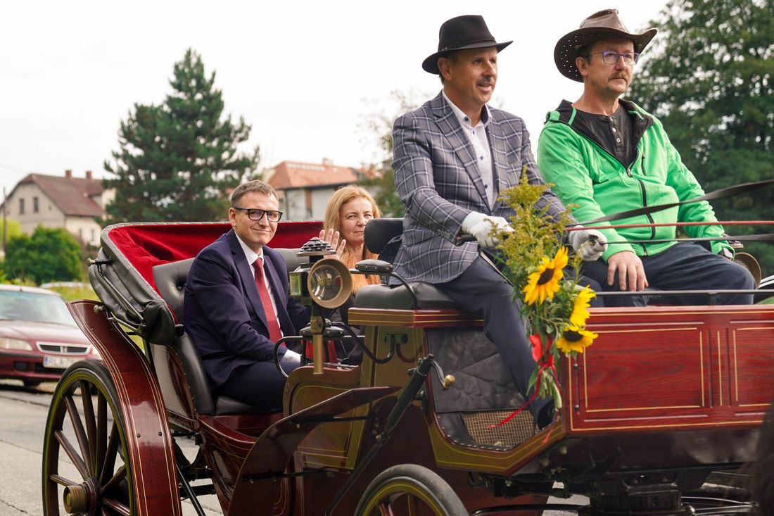 Kiedy uczestnicy dojechali pod wiatę rekreacyjną nadszedł czas na przekazanie chleba dożynkowego przez starostów Dożynek. Prezydent Miasta Michał Urgoł podziękował wszystkim zaangażowanym w organizacje takiej uroczystości, a następnie podzielił chleb dożynkowy między uczestników sobotniej zabawy.