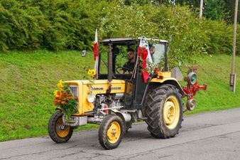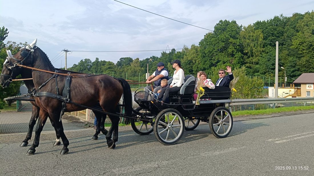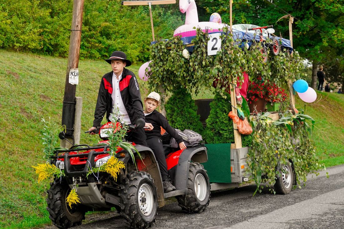 Po uroczystej mszy św. w kościele pw. Niepokalanego Serca NMP, po raz pierwszy ulicami sołectwa przejechał dożynkowy korowód. Można było zobaczyć nie tylko piękne bryczki zaprzężone w konie, ale również ustrojone traktory, samochody i nawet motocykle.