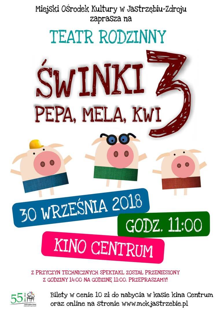 Przedstawienie „Świnki 3 – Pepa, Mela, Kwi” w wykonaniu aktorów Teatru Zagłębia w Sosnowcu będzie można zobaczyć 30 września w kinie Centrum.