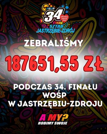 Podczas 34. Finału Wielkiej Orkiestry Świątecznej Pomocy mieszkańcy po raz kolejny pokazali ogromne serca. Wspólnymi siłami udało się zebrać imponującą kwotę 187 651,55 zł.