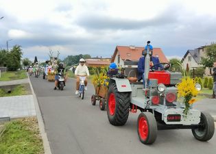 Kolejnym punktem tegorocznego Święta Plonów był Korowód Dożynkowy. Ulicami sołectwa przejechały efektownie przyozdobione wozy, traktory, bryczki i inne pojazdy, wioząc mieszkańców sołectw i zaproszonych gości.
