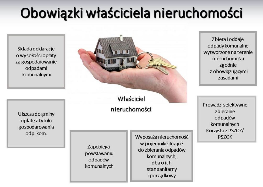 Zgodnie z ustawą z dnia 13 września 1996 roku o utrzymaniu czystości i porządku w gminach (Dz.U. z 2022 r, poz. 1297 z późn. zm.) przez właścicieli nieruchomości rozumie się także współwłaścicieli, użytkowników wieczystych oraz jednostki organizacyjne i osoby posiadające nieruchomości w zarządzie lub użytkowaniu, a także inne podmioty władające nieruchomością.
