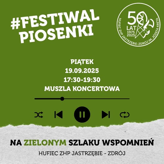 Z okazji 50-lecia Hufca ZHP Jastrzębie-Zdrój serdecznie zapraszamy na Festiwal Piosenki Ekologicznej "Zielona Melodia"