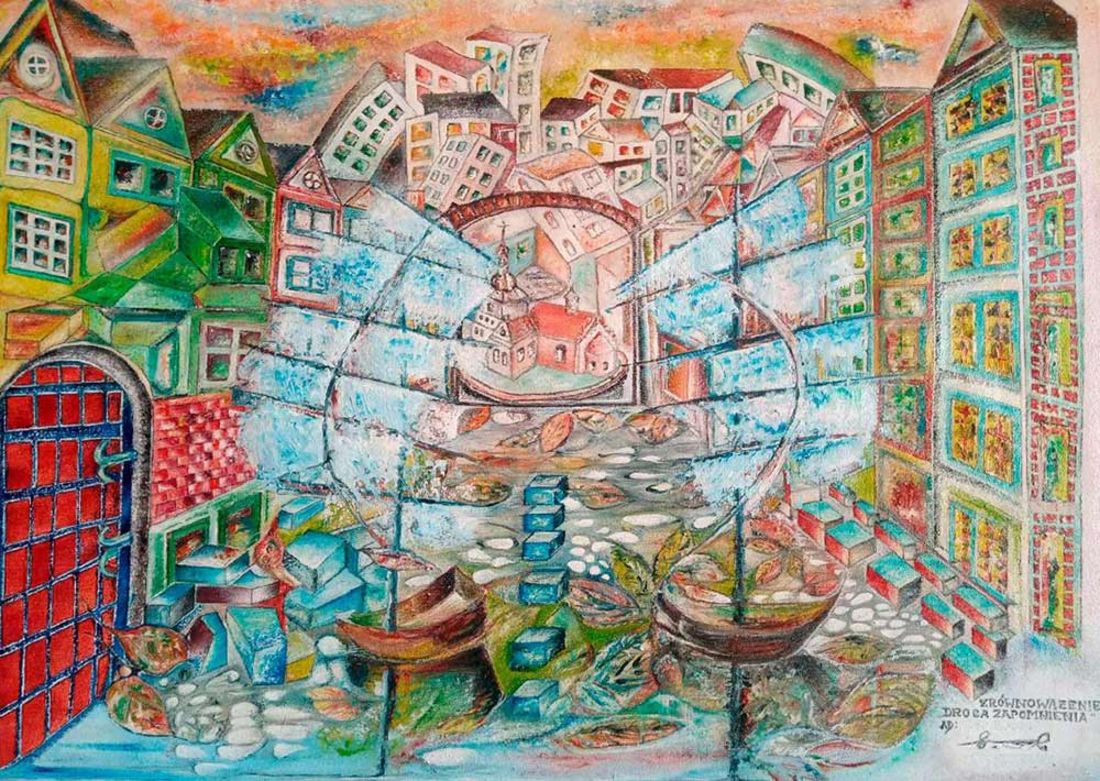 - Pięć lat temu zdiagnozowano u mnie chorobę Parkinsona, dwa lata temu przeszedłem rozległy zawał serca. Od tego czasu zacząłem inaczej odmierzać czas. Utrwalam dany mi czas na płótnach jako opowieści. Malowanie jest dla mnie terapią. Zwalnia procesy drżenia spoczynkowego, umacnia antydepresyjnie i pozwala cenić i ocenić wartość życia. Obrazy powstają ze słów, które umieszczam w formie wierszy, uzupełniają się i razem pokazują moją opowieść. Przedstawiam swój świat – jak ktoś zobaczy w nim bliskość swojego odbioru – będę szczęśliwym człowiekiem. Miłego oglądu tych dokonań w Galerii „Ciasna”