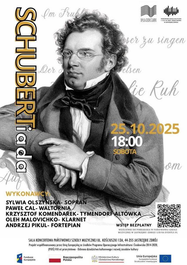 Państwowa Szkoła Muzyczna zaprasza na koncert "SCHUBERTiada", który odbędzie 25 października, o godzinie 18:00 w Sali Koncertowej.
