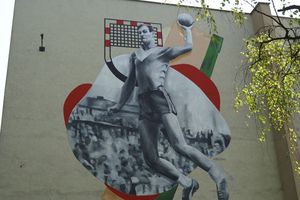 Mural przedstawia Františka Brůnę, legendę czeskiej i karwińskiej piłki ręcznej, posiadacza złotego medalu Mistrzostw Świata w Szwecji w 1967 roku, srebrnego medalisty Letnich Igrzysk Olimpijskich w Monachium w 1972 roku oraz brązowego medalisty Mistrzostw Świata w Czechosłowacji w 1964 roku. Z Baníkiem Karwina zdobył mistrzostwo Czechosłowacji w 1968 i 1972 roku.