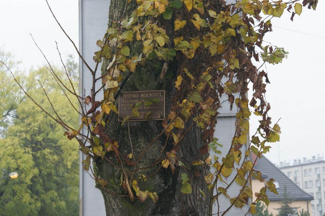 Drzewo wolności z tablicą zasadzone 4 lipca 1922 roku na pamiątkę włączenia Śląska do macierzy.