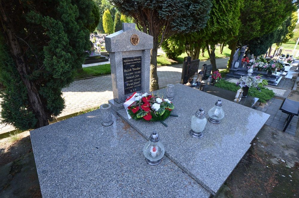 Grób zbiorowy wojenny: Teodora Bujoka, Jana Szmuka i Józefa Firuta poległych o wolność Śląska w czasie walk powstańczych w okolicach Odry w dniu 3 marca 1921 roku.