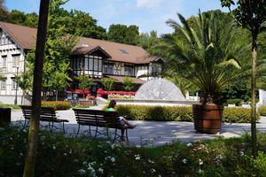 Budynek Łazienek II. Nie możecie ominąć go podczas spaceru po Parku Zdrojowym - stoi w jego sercu. Wraz z Domem Zdrojowym i Muszlą Koncertową wyznacza teren placu, który tętni życiem każdego lata. Ten charakterystyczny budynek z wieżą pośrodku, w której w czasach uzdrowiska znajdował się zbiornik na solankę, stanowił kiedyś wdzięczny obiekt dla wydawców pocztówek. Zaaranżowany przy budynku Łazienek II kwiatowy zegar w okresach letnich przyciąga uwagę spacerowiczów.