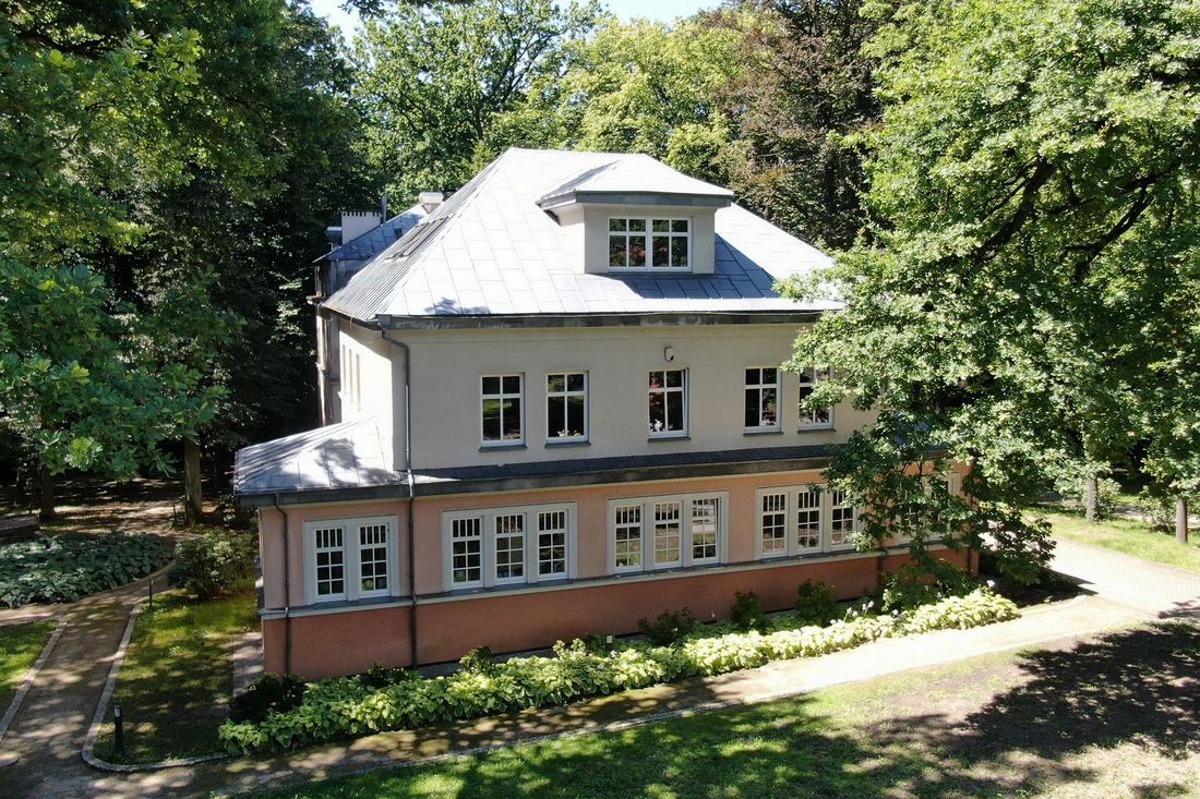Ten charakterystyczny zabytek ze spadzistym czerwonym dachem mieści się przy ulicy 1 Maja, w pouzdrowiskowej dzielnicy Zdrój. Otoczony jest parkiem zwanym uniwersyteckim - w przeciwieństwie do głównego miejskiego Parku Zdrojowego ma nieco bardziej "dzikie" oblicze. Znaleźć tu można między innymi dwa uznane za pomniki przyrody wiązy szypułkowe.