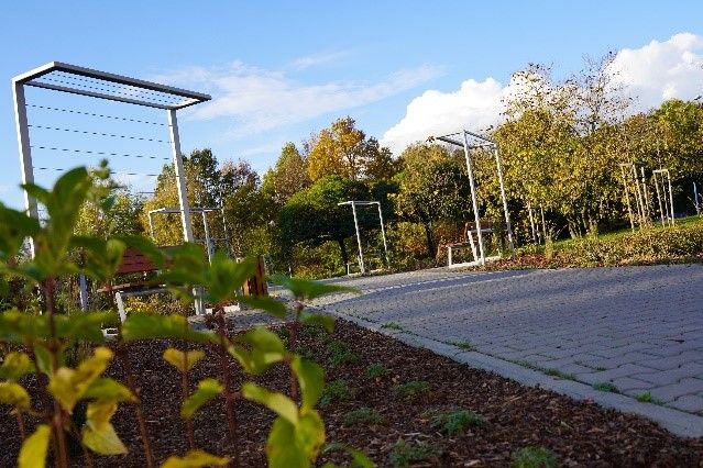 perowskia łobodolistna i rudbekia. Park można znaleźć przy oś. Chrobrego, ul. Jana Pawła II i ul. Marusarzówny