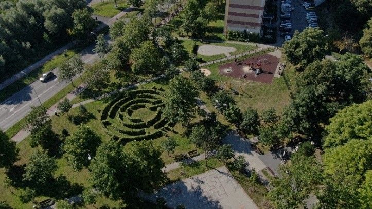 Na terenie znajduje się naturalny labirynt z grabu pospolitego.